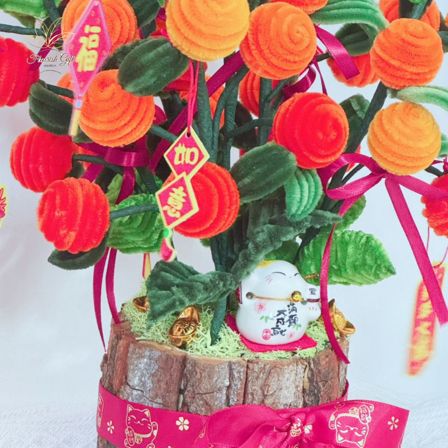 Bright oranges and tiny red lanterns instantly bring a warm festive touch to your space.
